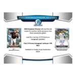 Experience the pinnacle of collector’s delight with the 2023 Bowman Chrome Baseball HTA Jumbo Box. Each box features hand-picked premium chrome trading cards, including autographed gems from top stars and prospects. Elevate your collection today and own a piece of baseball history!