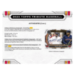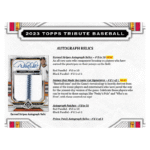 One of the most coveted releases of the year, the 2023 Topps Tribute Baseball box delivers again! Find 3 autos or auto relics and 3 relic cards in each box!