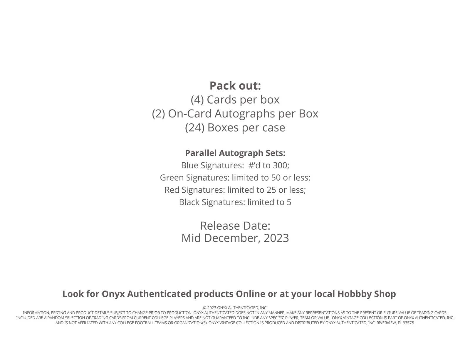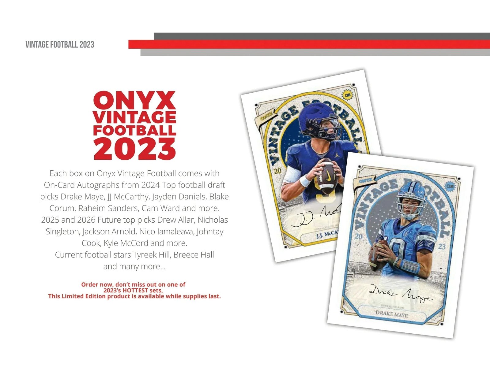 2023 Onyx Vintage Football Cards PRODUCT HIGHLIGHTS: