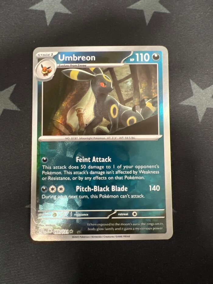 Umbreon Pokemon Card (Prismatic Evolutions 059/131) Masterball Reverse Holo