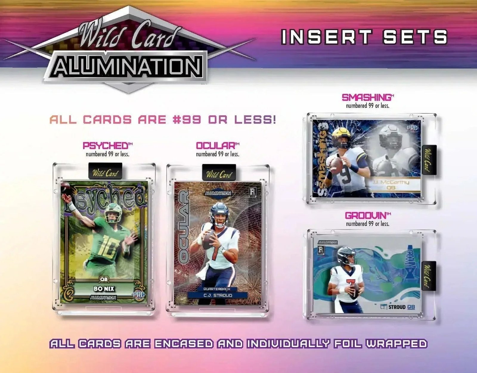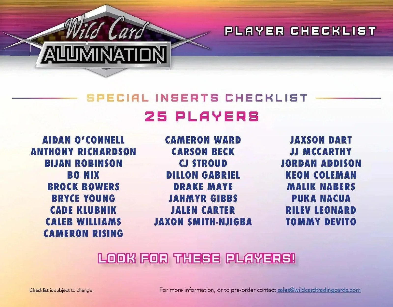- Star-studded 25-Player Checklist including: CJ Stroud, Bryce Young, Anthony Richardson, Bijan Robinson, Caleb Williams, JJ McCarthy, Drake Maye, and MORE!
